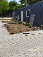Miniosiedle w Białobrzegach wygląda coraz ładniej. Dzięki Waszej pomocy udało się ułożyć chodnik i posadzić kwiaty.