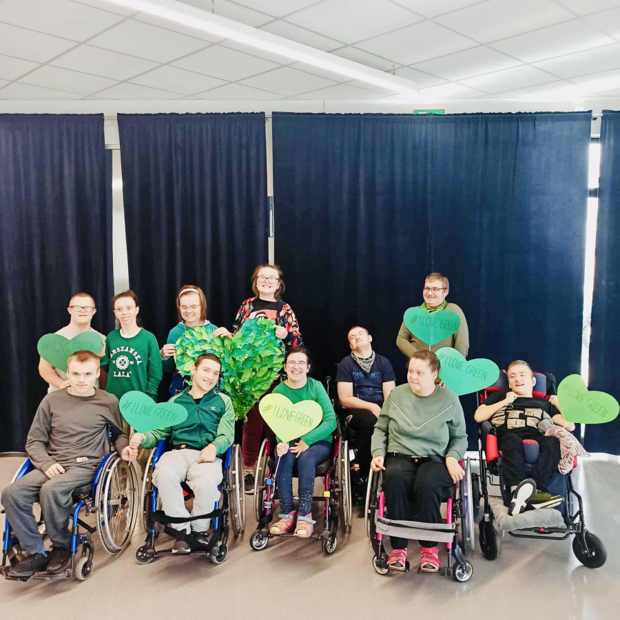 Kolor zielony odnosi się do koloru symbolizującego nadzieję i solidarność z osobami z Mózgowym Porażeniem Dziecięcym.