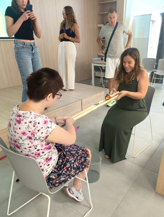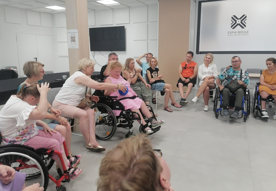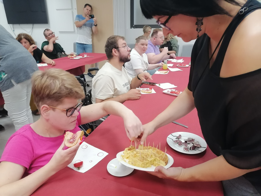 Dzień rozpoczął się od aktywności sportowych. Wzięliśmy udział w inkluzyjnych grach i sportach prowadzonych przez hiszpańską organizację. Spotkanie z prezesem fundacji sportowej dla osób z niepełnosprawnościami „Costa Dorada” dostarczyło inspiracji i motywacji – sport został ukazany jako droga do aktywnego i niezależnego życia. Największe bariery rodzą się w naszych głowach.