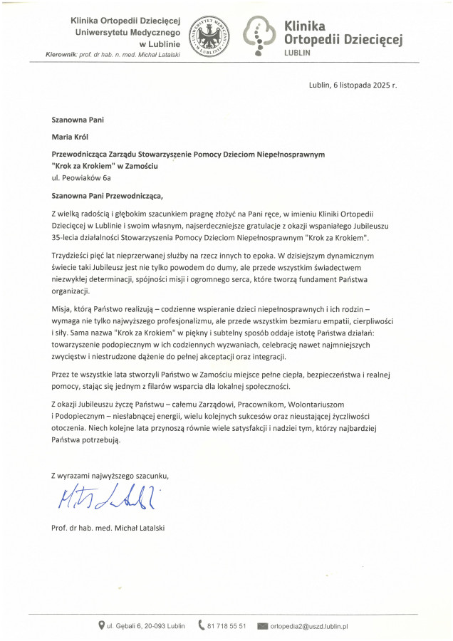 Udostępniamy wszystkie listy gratulacyjne, dyplomy uznania oraz wyróżnienia, które otrzymaliśmy w związku z tym Jubileuszem.
