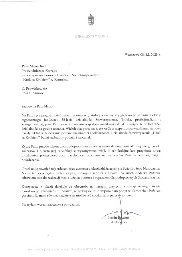 Chcemy serdecznie podziękować za Waszą obecność podczas obchodów 35-lecia działaności Stowarzyszenia "Krok za krokiem" w Zamościu.